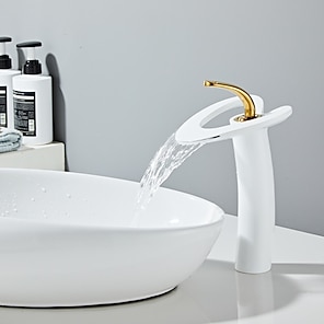 Waterfall Bathroom Sink Mixer Faucet Tall, Mono Wash Basin Single Handle Taps Deck Mounted, Washroom with Hot and Cold Hose Monobloc Vessel Water Brass Tap