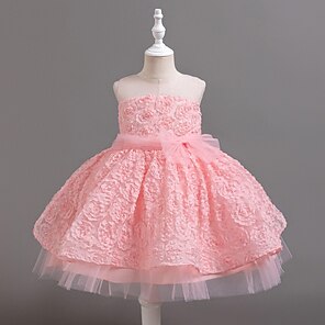 Lapset Tyttöjen Kukkatyttömekko Mekko Yhtenäinen Hihaton Suoritus Häät Juhla Silmukka Kirjailtu Rusetti Prinsessa Makea Puuvilla Tylli Epäsymmetrinen Vaaleanpunainen prinsessa mekko A linjainen mekko