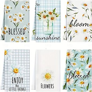 6PCS Daisy Pattern Kitchen Towels Set, Ultra Soft Microfiber Dishcloths for Cooking and Baking, Machine Washable, Floral Tea Towels for Christmas and Seasonal Home Decor