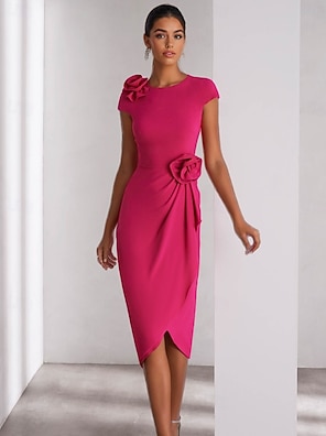 Strak kolom Over de knie Cocktailjurken Feestjurken Elegant minimalistische Mouwloos Eén-schouder Schoolfeest Bruiloft gast Stretchstof met Split Pure Kleur Bandjes