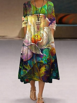 dames casual jurk bloemenprint v-hals lange jurk maxi jurk etnisch casual dagelijks vakantie 3/4 lengte mouw zomer