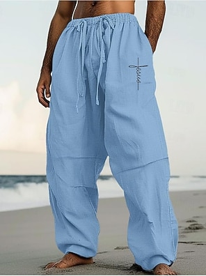 Herre Linbukser Bukser Sommerbukser Strandbukser Elastisk midje Snorer Rett ben عادي Komfort Pustende Full lengde utendørs Daglig Ferie Ferie Klassisk Stil Svart Hvit
