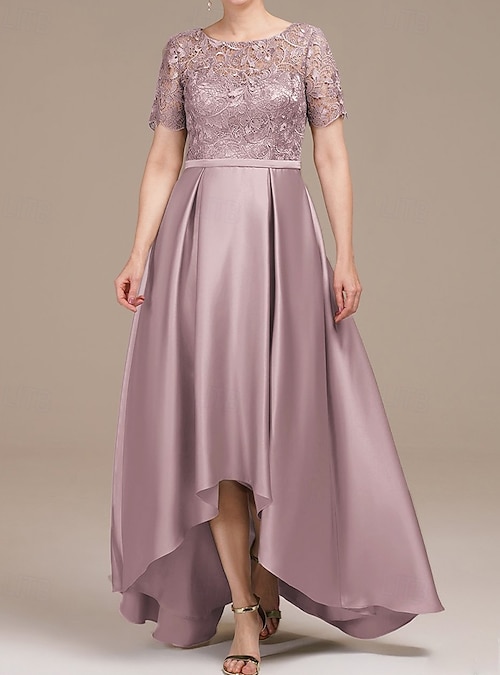A-linje Gulvlengde Festkjole Cocktail Kjole Gjestekjole til bryllup Kjole til brudens mor Kortermet Båthals Elegant Enkel Minimalistisk Formell Bryllupsgjest Sateng med Blonder