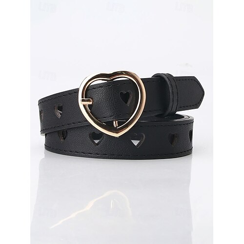 Justerbart belte med hjerteformet spenne for kvinner, imitert skinn, i flere farger, perfekt som valentinsgaver og daglig bruk.