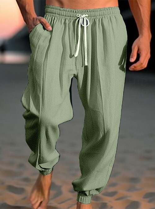 Bărbați Pantaloni de in Pantaloni Pantaloni de vară Pantaloni de plajă Cordon Talie elastică Manșetă Elastică Simplu Confort Respirabil Casual Zilnic Concediu Modă Stil Clasic Verde Militar Bleumarin