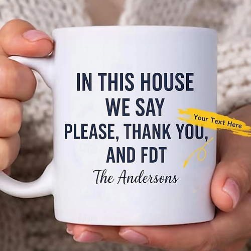 Personalized Funny Gift Mug with Custom Name Text In This House We Say Please Christmas Gift for Friends Family Coworkers Funny Ceramic Coffee Cup 11oz / 15oz