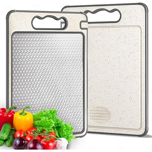 Stainless Steel Cutting Board for Kitchen, Food-Grade Chopping Board, Easy to Clean, Durable and Scratch-Resistant, Non-Slip Design with Garlic Grinder and Knife Sharpener