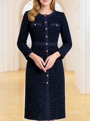 Sukienka na imprezę w stylu A o długości herbaty sukienka koktajlowa sukienka do pracy sukienka matki panny młodej z długim rękawem kołnierzykiem elegancka vintage impreza spandex z guzikami