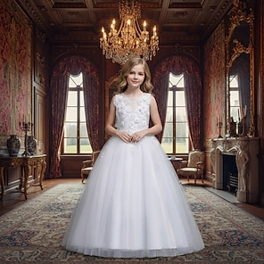 Vestido para Meninas das Flores Para Meninas Vestido formal Traje de casamento Festa Casamento Formal Adorável Princesa Lindo Vestido de Primeira Comunhão Renda Patchwork Floral Sem Manga Gola Redonda