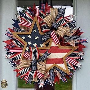 coroană patriotică decor de ziua independenței americane coronițe roșu alb albastru coroane de 4 iulie - umeraș floral cu cap roșu pentru ziua memorială/4 iulie