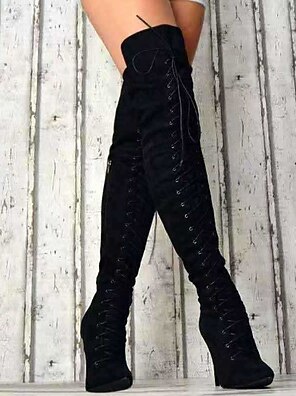 Women's Lace-Up Over-the-Knee Boots - Black & Burgundy Thigh-High Stiletto Heels for Winter Fashion and Night Out
